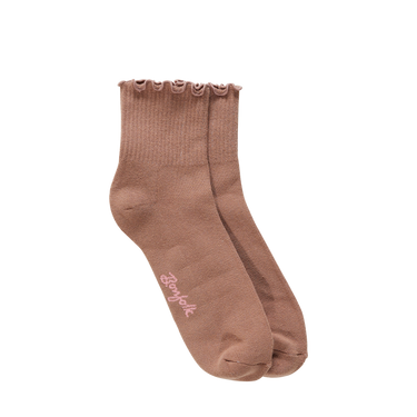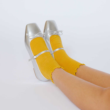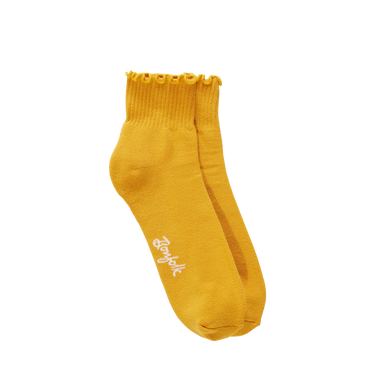 A fun take on a classic style, the Ruffled Quarter Sock adds a touch of charm to any outfit. The ruffled cuff and quarter length work well with sneakers, loafers, or heels. Cute and easy to wear, it's a great everyday sock with a bit of flair. Available in marigold, mocha, and pink.